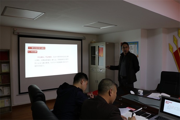 會(huì)議首先通過(guò)以黨支部委員及黨員同志分別宣讀學(xué)習(xí)文件形式來(lái)進(jìn)行,以新穎的方式傳達(dá)宣傳十九大精神。支委委員及黨員同志通過(guò)宣讀十九大重要文件不僅加深了學(xué)習(xí),讓黨員同志們記憶猶新,同時(shí)也讓主題黨日活動(dòng)更加生動(dòng)活潑。