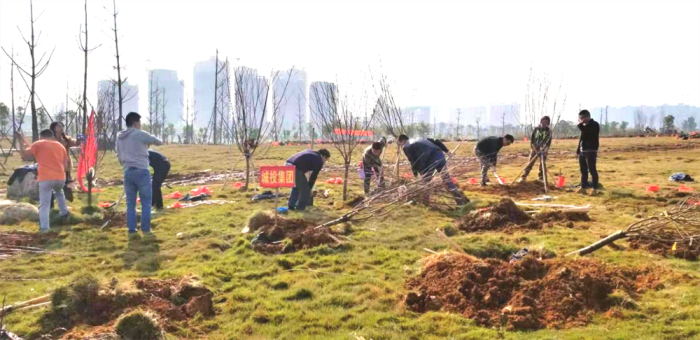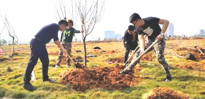 在活動負責人進行任務布置、流程講解后,城投集團團委的青年們便開始了有序的植樹活動。大家分工明確、齊心協力,揮舞鐵鍬翻新土,扶植新苗列成行,呈現出一派熱火朝天的勞動場面。