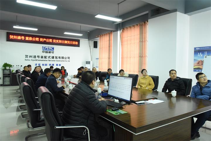 12月23日,賀州市富泉供水有限責任公司黨支部、賀州市城投資產管理有限公司黨支部、賀州通號裝配式建筑有限公司黨支部聯合開展“黨員走進PC構件生產基地、助推裝配式建筑示范基地發展”主題黨日活動。富泉公司黨支部書記陳劍鋒、資產公司黨支部書記謝慈政、賀州通號黨支部書記劉豐收及三個黨支部全體黨員、入黨積極分子參加活動。