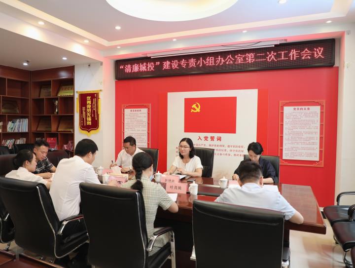 7月8日上午,集團“清廉城投”建設專責小組辦公室召開第二次會議,會議由“清廉城投”建設專責小組辦公室主任吳澤蓮主持,“清廉城投”建設專責小組辦公室副主任湯彩燕、聶茂良及辦公室全體成員參加會議。