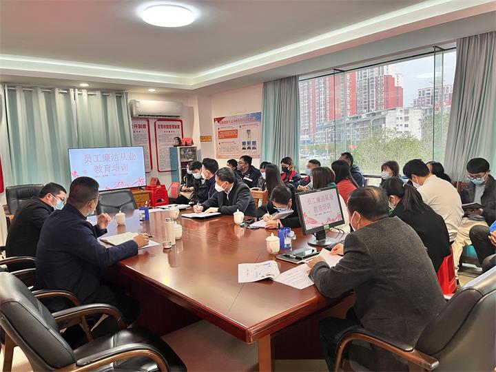 發(fā)布時(shí)間:2022-12-16 作者:圖文/黃秀英 來(lái)源:本站原創(chuàng) 審核:鄧永劍為充分發(fā)揮廉潔文化在反腐倡廉和作風(fēng)建設(shè)中的作用,扎實(shí)推動(dòng)廉潔文化向基層延伸,12月16日下午,能源公司開(kāi)展了廉潔文化“進(jìn)崗位”活動(dòng)。公司黨支部書(shū)記、執(zhí)行董事、總經(jīng)理黎榮堅(jiān)主持活動(dòng),公司全體干部職工參加會(huì)議。