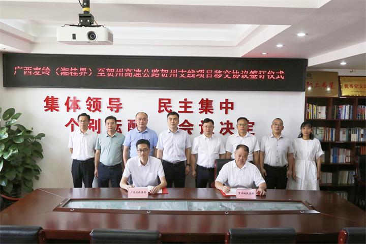 賀州支線西接麥賀高速公路主線,東經(jīng)連賀高速公路與二廣高速相連,公路建設(shè)打通了旺高工業(yè)基地、西灣工業(yè)基地與華北、華中及沿海地區(qū)的聯(lián)系通道,工程建設(shè)對優(yōu)化賀州市路網(wǎng)結(jié)構(gòu),構(gòu)建廣西東部和中部地區(qū)的重要門戶和樞紐,落實賀州市“十四五”規(guī)劃及綜合交通運輸發(fā)展規(guī)劃,提升高速公路過境效率,加速助力實施鄉(xiāng)村振興,促進賀州市經(jīng)濟社會發(fā)展具有重要意義。項目移交協(xié)議的簽訂,標(biāo)志著項目正式移交廣西交投集團實施,為項目快速推進打下堅實基礎(chǔ)。簽約儀式后,雙方還就如何加快項目建設(shè),不斷深化交流合作進行了探討。