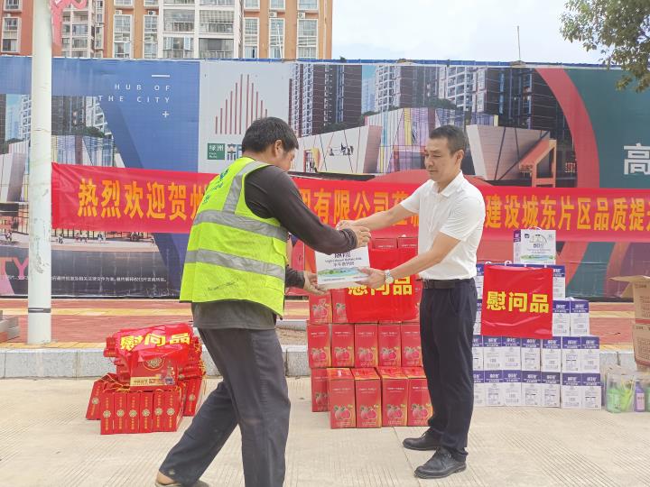 在項(xiàng)目現(xiàn)場,楊邦樞將月餅、牛奶和柚子等慰問品送到農(nóng)民工手中,并對節(jié)日期間仍然奮戰(zhàn)在工作崗位上的農(nóng)民工表達(dá)深深的敬意。同時(shí)叮囑他們要牢固樹立安全責(zé)任意識(shí),按標(biāo)操作,將安全防范工作落實(shí)落細(xì),打造安全優(yōu)質(zhì)精品工程。