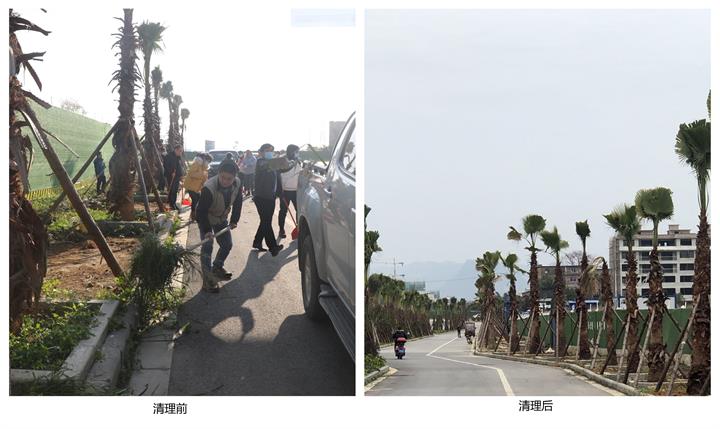 在城投公司黨支部副書記、公司董事長蘭乾雄的帶領下,現場人員分成三個工作組,分別對城東新區桃源路道路兩旁綠化帶、人行道上的雜草、石塊、淤泥、垃圾進行全面清理整治?;顒又校蠹曳止っ鞔_、干勁十足,女同志們拿起掃把、鏟子,對人行道上的瓜皮紙屑、枯枝爛葉、淤泥等垃圾進行了仔細清掃,不漏一處,不存死角;男同志們揮舞著鐮刀、鐵鍬,認真清理道路兩旁綠化帶中的雜草、石塊,并將清理出來的垃圾裝入清運車。經過全體人員的共同努力,綠化帶和人行道上的雜草、垃圾和散落的石塊被一點點清理出來,道路環境煥然一新。