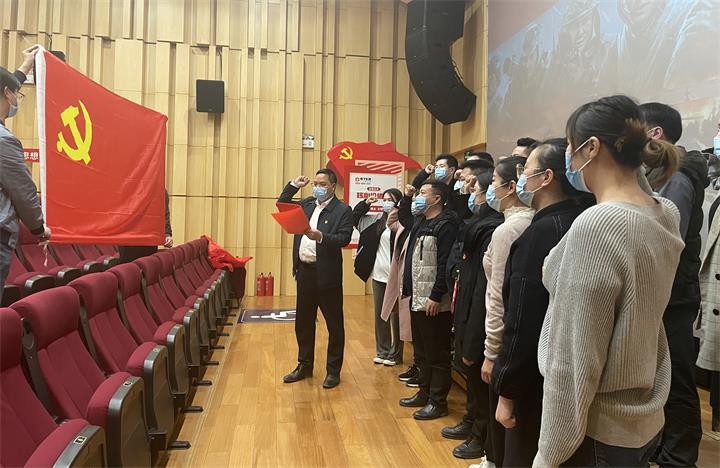 觀影前,面向鮮紅的黨旗,城投實(shí)業(yè)黨支部副書(shū)記聶茂良帶領(lǐng)全體黨員干部職工重溫入黨誓詞。