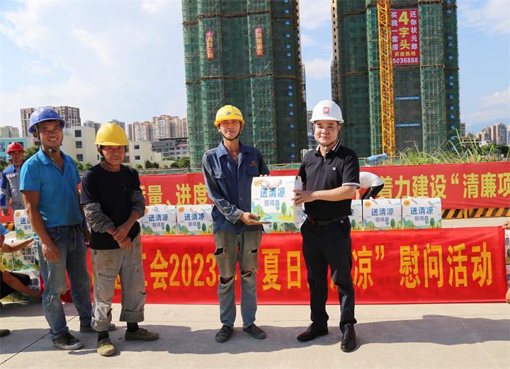 發(fā)布時(shí)間:2023-07-28 作者:圖/義潔 文/胡博文 來(lái)源:本站原創(chuàng) 審核:葉茂桃 吳姍炎炎夏日,高溫酷暑。為做好防暑降溫工作,7月28日,市總工會(huì)組織慰問(wèn)組到城投集團(tuán)實(shí)施的平安居棚改項(xiàng)目開(kāi)展“送清涼”慰問(wèn)活動(dòng),為高溫下堅(jiān)守一線工作崗位的職工送去組織的關(guān)懷和夏日的清涼。集團(tuán)黨委委員、副總經(jīng)理柳國(guó)忠,集團(tuán)工會(huì)副主席、總經(jīng)理助理謝慈政參加慰問(wèn)。