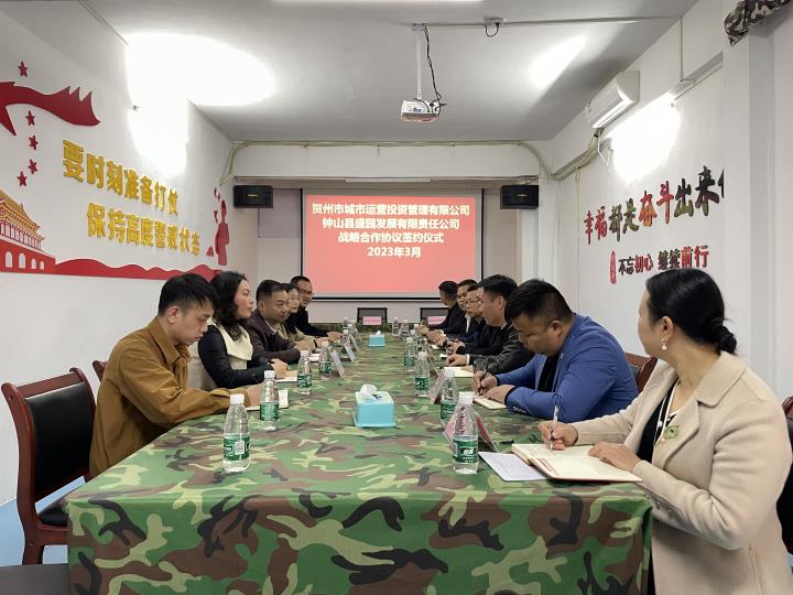 3月1日下午,賀州市城市運營投資管理有限公司與鐘山縣盛園發展有限責任公司成功簽署戰略合作協議。城市運營公司黨支部書記、負責人熊敏與鐘山盛園公司總經理張堅分別代表雙方進行簽約。