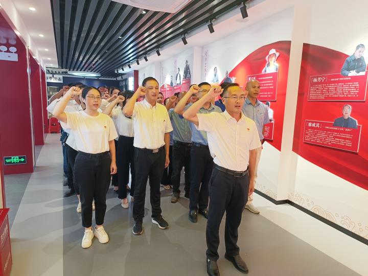 在廉政基地二樓展廳,黨員干部面再一次舉起右手,重溫入黨誓詞。錚錚誓言許下嚴守黨的紀律、對黨絕對忠誠的莊嚴承諾,宣示著對黨的堅定信念和為黨的事業奮斗終生的強大決心。