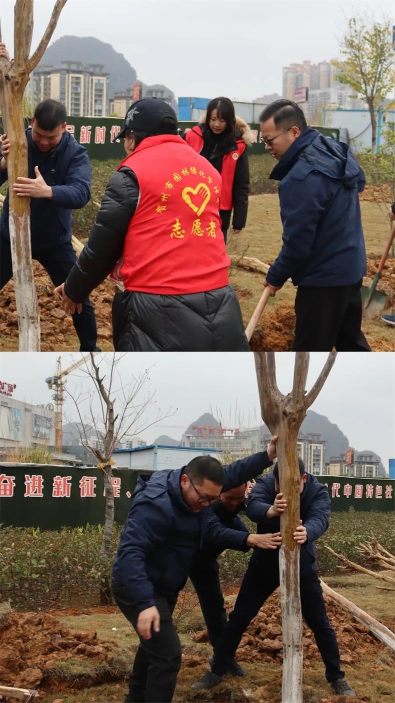 在植樹現場,大家仔細傾聽工作人員講解植樹的注意事項及植樹要求,隨后到負責區域熱火朝天開始植樹。大家人手一件植樹工具,分工協作,配合默契,扶正樹木、揮鍬鏟土、回填泥土、提水澆樹,每一個環節都井然有序。能源公司黨支部合力栽植10余棵樹,用實際行動種下了春天的美好,為賀州增加了一抹新綠。