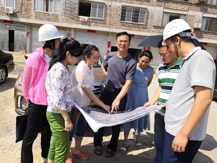 7月17日,賀州市棚改辦常務(wù)副主任蒙宇翔一行實(shí)地調(diào)研出水塘鴨子寨、平安居棚戶區(qū)改造項(xiàng)目。