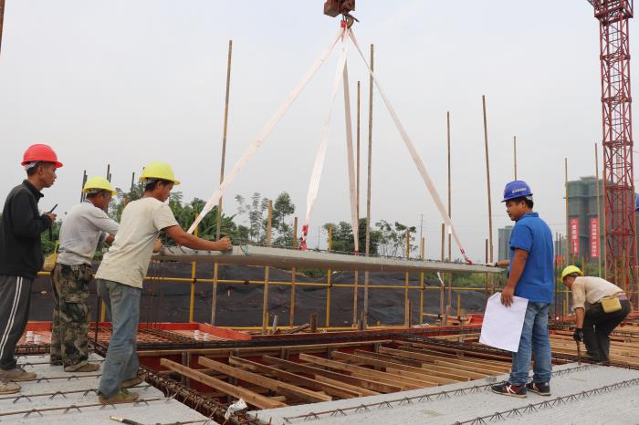 賀州市八步區(qū)城東實(shí)驗(yàn)小學(xué)項(xiàng)目首塊預(yù)制樓板吊裝成功2018-10-12